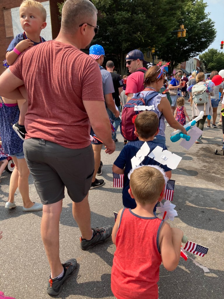 Oh, and who woulda thunk it, but our boys didn’t just get to attend the local 4th of July Parade , they WERE the 4th of July Parade. Our little town puts on a parade that is made up entirely of little people and they’re scooters/bikes/etc. all decked out in everything red, white, and blue! And once again, it’s free! The town provides decor, you just show up with your child and their set of wheels and have a blast! And best of all… ice cream awaits at the end of the march! How cool is that???